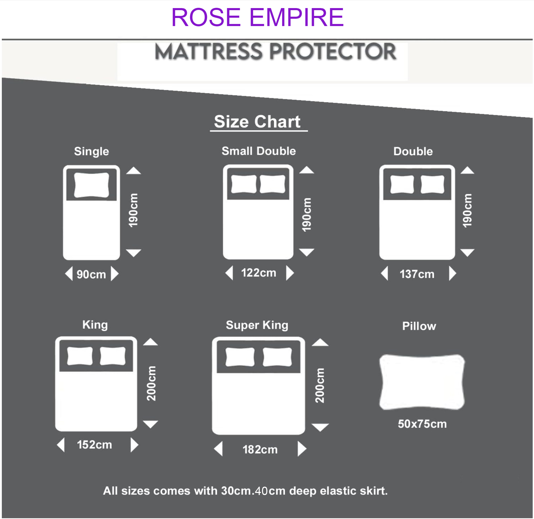 122cm X 191cm, 137cm X 191cm, 152cm X 198cm, 183cm X 198cm, 48cm X 74cm X 2pcs, 91cm X 191cm