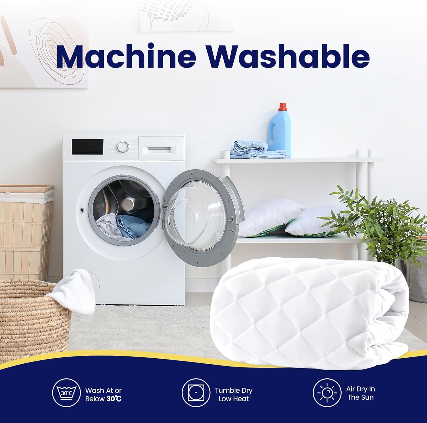 Enhance your sleep experience with our hotel-quality quilted mattress protector, designed for ultimate comfort and durability. This luxuriously soft mattress topper adds a plush layer to your bed while protecting your mattress from daily wear.